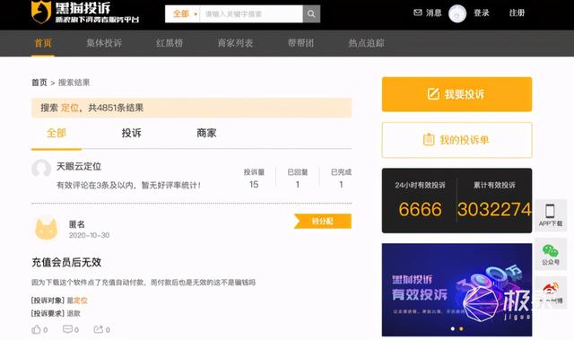 极果君到「黑猫投诉」消费者投诉平台也看了一下,我们还是搜索定位二字,就有4851条结果,如果加上剩下吃“哑巴亏”的,这个数量难以估量。