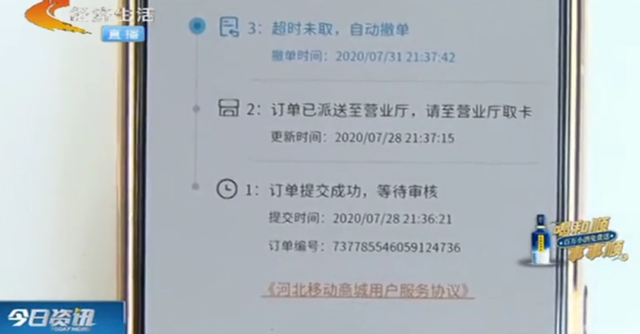 我在河北移动手机app上,选购了两个号码,6618和尾号6676, 根据系统提示我选择的是到乐凯南大街的营业厅自取。7月30号,我来营业厅取号的时候发现营业厅已经关门了。